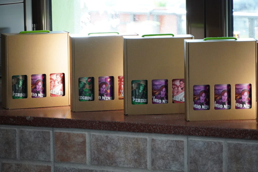 El proyecto se concreta en una edición especial que se presenta bajo tres etiquetas diferenciadas, cada una asociada a distintas líneas y relatos del propio proyecto. “La Mio Nena” se vincula al ámbito del podcast, “La Peregrina” conecta con el Camino de Santiago y “La Valduna” toma como referencia el pasado romano de Valduno, lugar donde se ubica la sede de Melodijopérez.