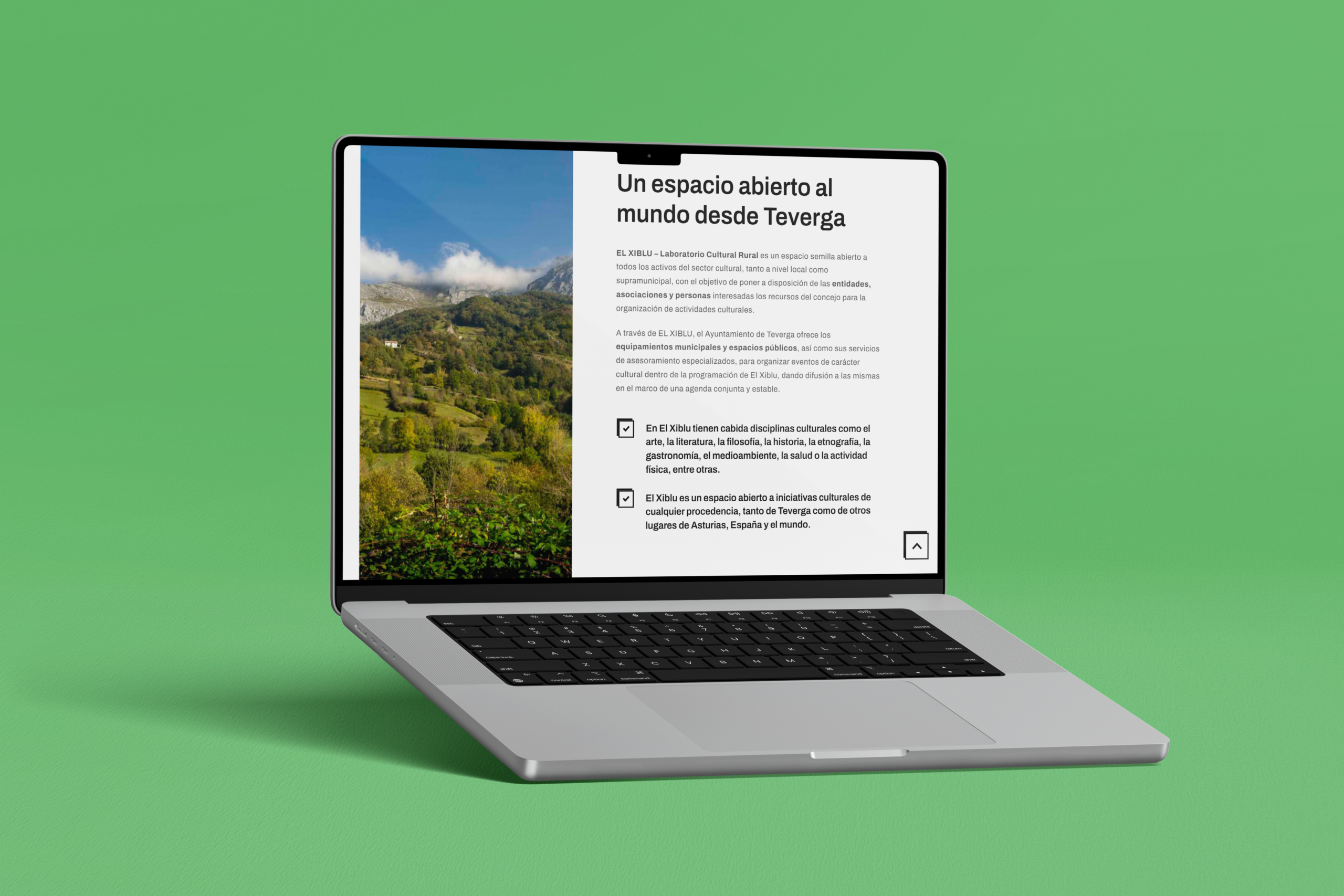 Web para El Xiblu, laboratorio cultural rural ubicado en Teverga, concebido como un espacio de encuentro, innovación y reflexión en el corazón de Asturias. Desarrollamos una página clara y accesible que organiza su programación, actividades y líneas de trabajo, facilitando la comprensión del proyecto y su conexión con el territorio. La web combina una estructura ordenada con una estética coherente con su identidad cultural, permitiendo comunicar de forma efectiva un proyecto impulsado desde el Ayuntamiento de Teverga.